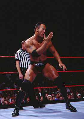"I'm gonna lay the smackdown on your ruddy poo candy ass if you smeeellllllllll what the great one is cooking." Talent Bio: Height: 6'5" Weight: 275 pounds From: Miami, Florida Favorite Quote: "Know Your Role!" Finishing Move: The Rock Bottom Career Highlights: World Wrestling Federation Champion (3), Intercontinental Champion (2) | Now do you smell what the great one is cooking ? | ||||||||||||||||